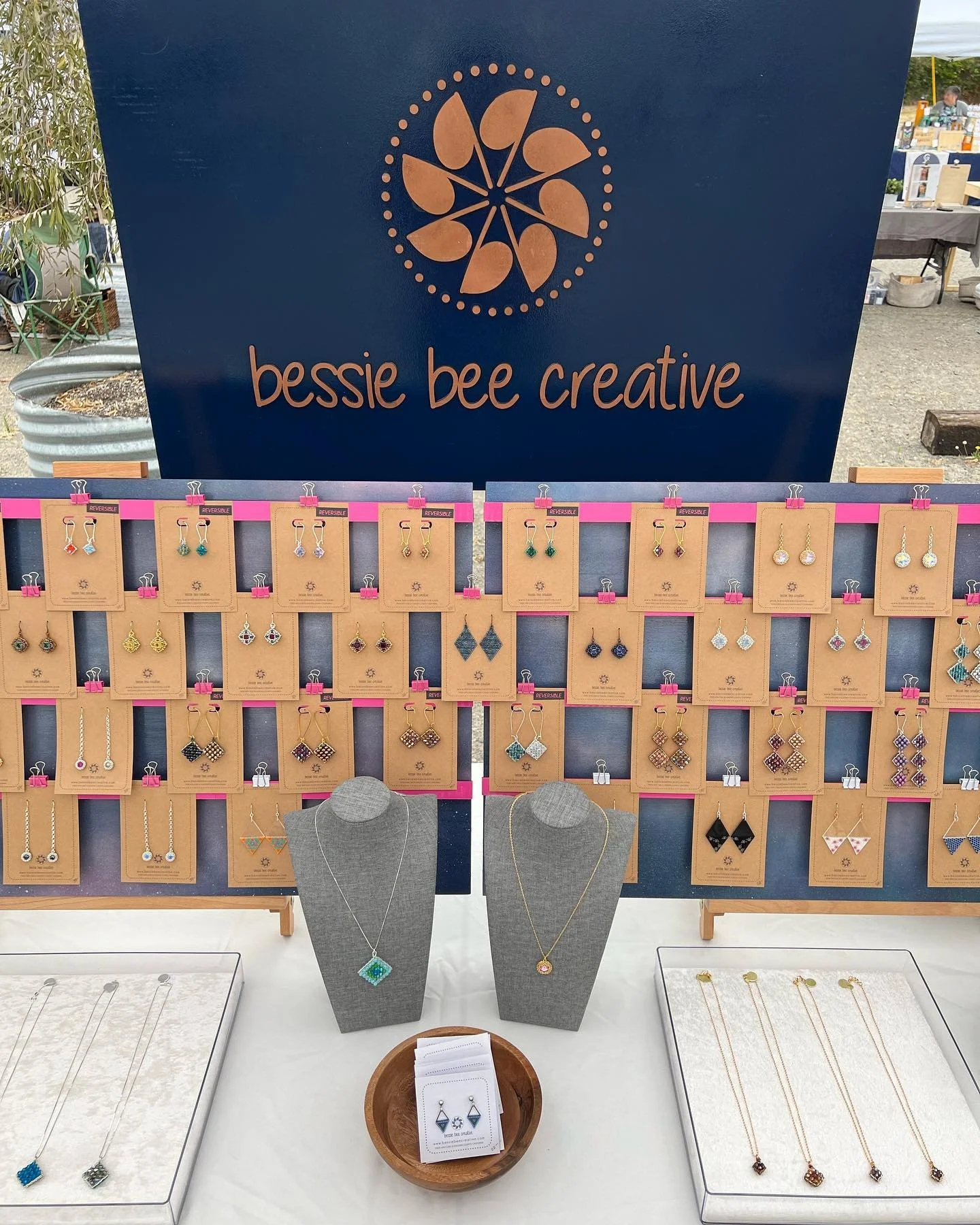 Founded in 2020, Bessie Bee Creative is based in Sonoma County, California. What began as a fluid abstract art practice has evolved into an ever-growing body of jewelry, artwork and functional pieces. The introduction of a laser cutter opened up new possibilities, allowing different processes to intersect and leading to a wider range of designs and products. Every item is made in-house from raw materials with care, curiosity and close attention to detail. Problem-solving and experimentation play an ongoing role in the development of new work.