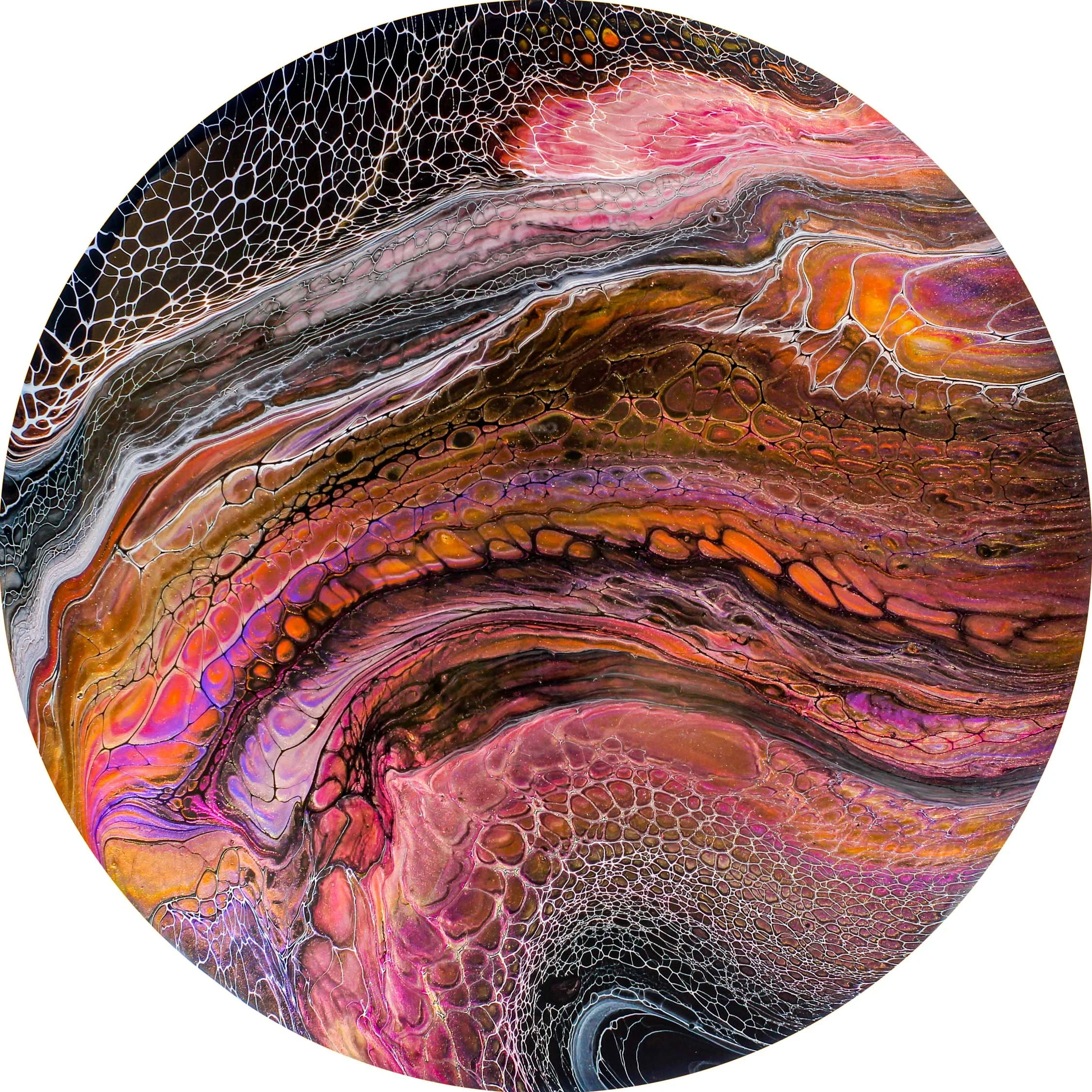 Original artworks are created using the same fluid art technique as the hand-painted coasters. Painted on birch wood panels, each piece is unique, showcasing vibrant color and depth. Finished with a minimum of two coats of varnish, the artwork is durable and ready to display, bringing a playful and colorful touch to any space.